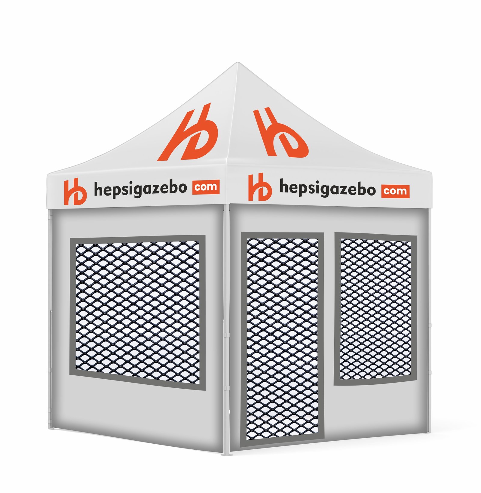 2×2 Baskılı Gazebo Tente (Baskılı Tavan+30’luk Çelik İskelet+2 Adet Baskılı Duvar+2 Adet Sineklik+Şeffaf+Pencereli Duvar+1 Adet Sineklik+Şeffaf Kapılı Pencereli Duvar)
