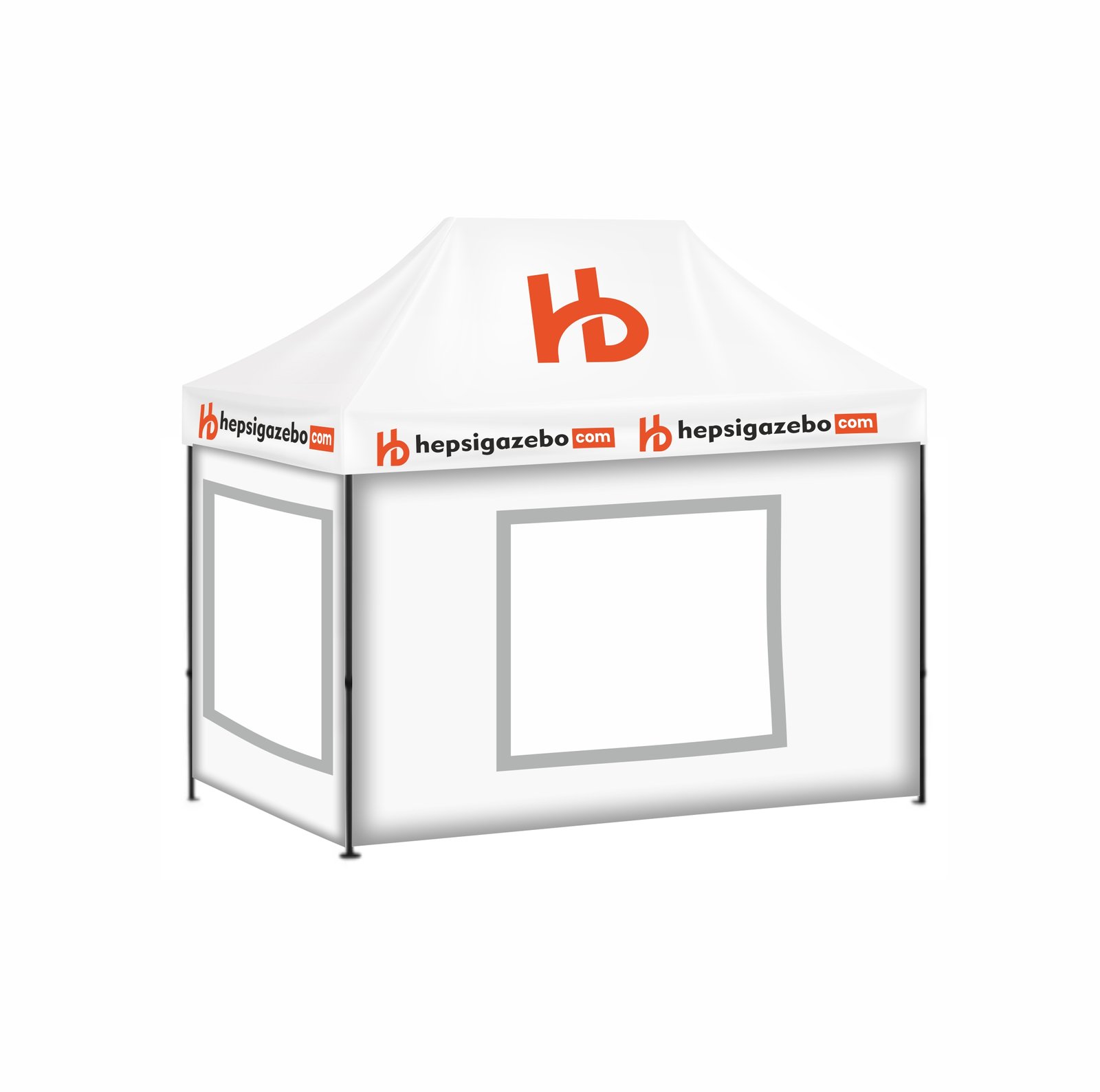 2×3 Baskılı Gazebo Tente (Baskılı Tavan+30’luk Çelik İskelet+2 Adet Şeffaf Duvar+2 Adet Baskısız Duvar)