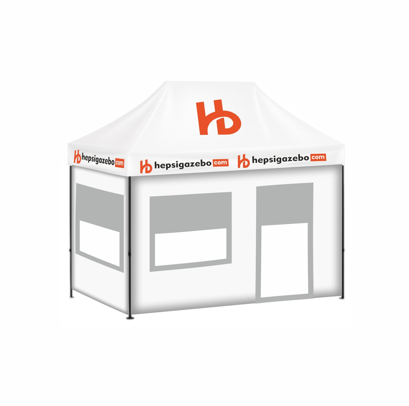 2×3 Baskılı Gazebo Tente (Baskılı Tavan+30’luk Çelik İskelet+2 Adet Şeffaf+Pencereli Duvar+1 Adet Tam Duvar+1 Adet Kapılı Pencereli Şeffaf+Pencereli Duvar)