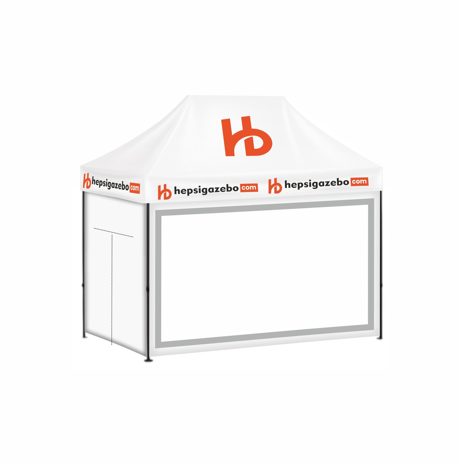 2×3 Baskılı Gazebo Tente (Baskılı Tavan+40’lık Çelik İskelet+1 Adet Tam Şeffaf Duvar+2 Adet Baskısız Tam Duvar+1 Adet Açılır Kapı)