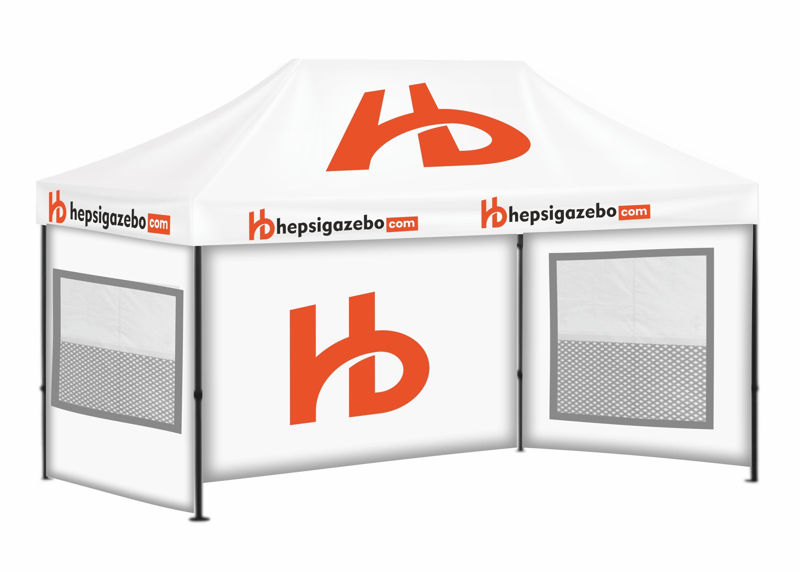 3×45 Baskılı Gazebo Tente (Baskılı Tavan+40’lık Çelik İskelet+2 Adet Sineklik+Şeffaf+Perdeli Pencereli Duvar+1 Adet Baskılı Duvar)