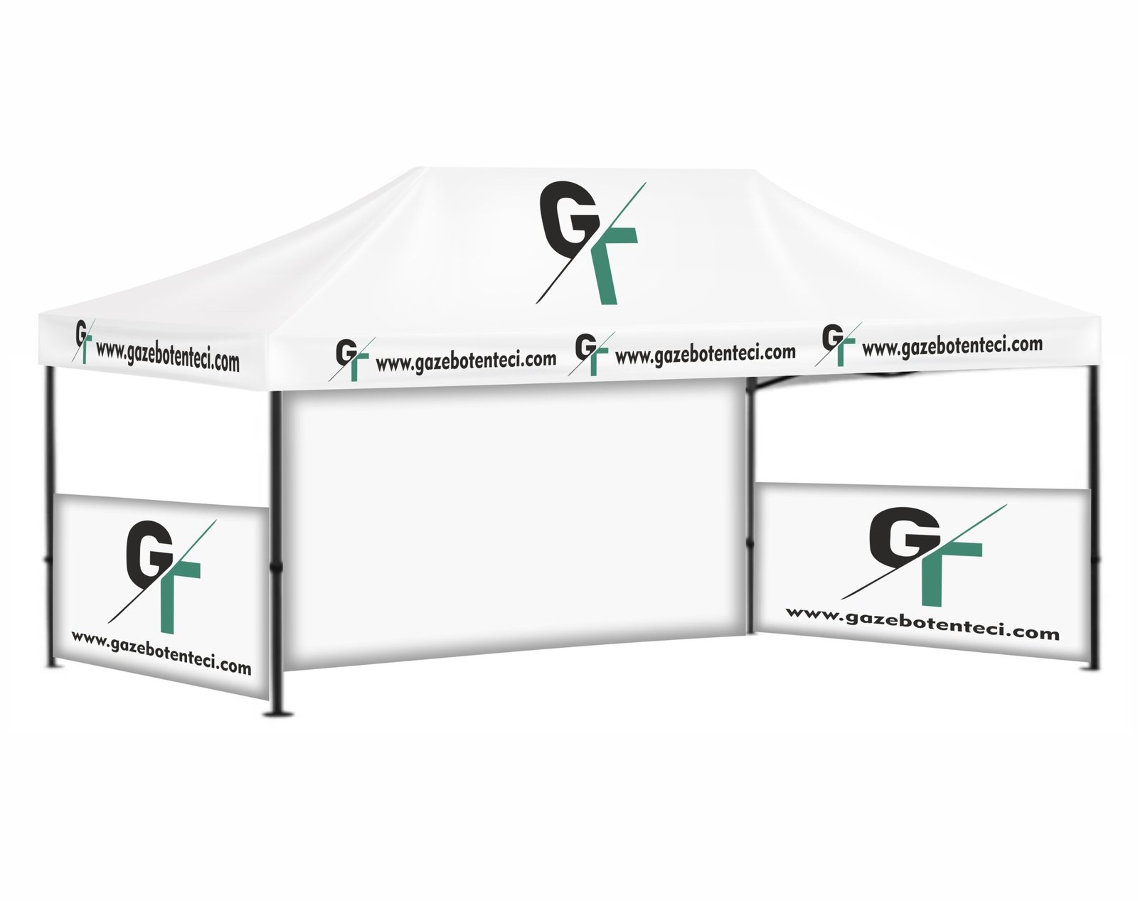 3×6 Baskılı Gazebo Tente (Baskılı Tavan+52’lik Alüminyum İskelet+2 Adet Baskılı Duvar+1 Adet Baskısız Duvar)