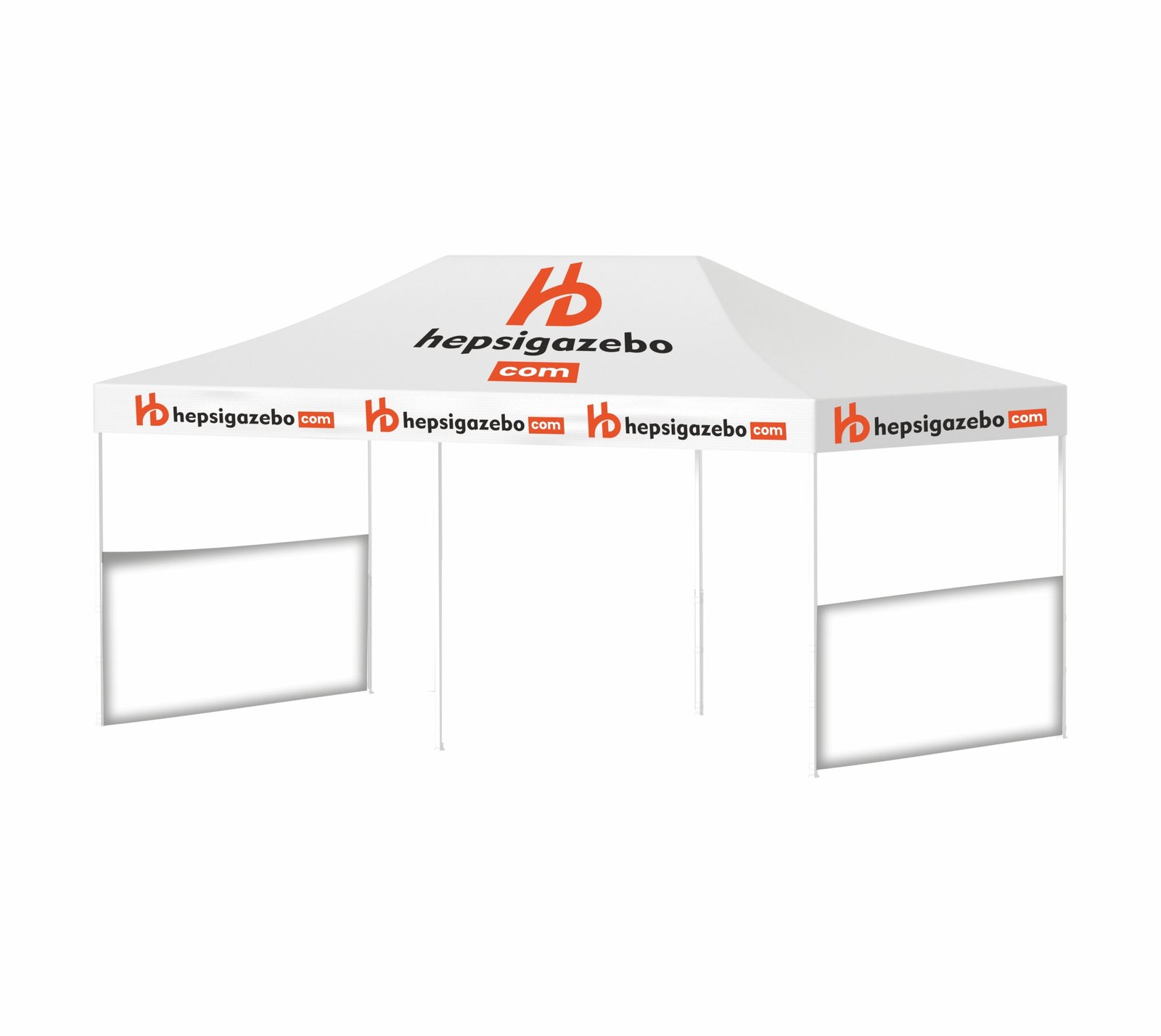 4×6 Baskılı Gazebo Tente (Baskılı Tavan+40’lık Alüminyum İskelet+2 Adet Baskısız Yarım Duvar)