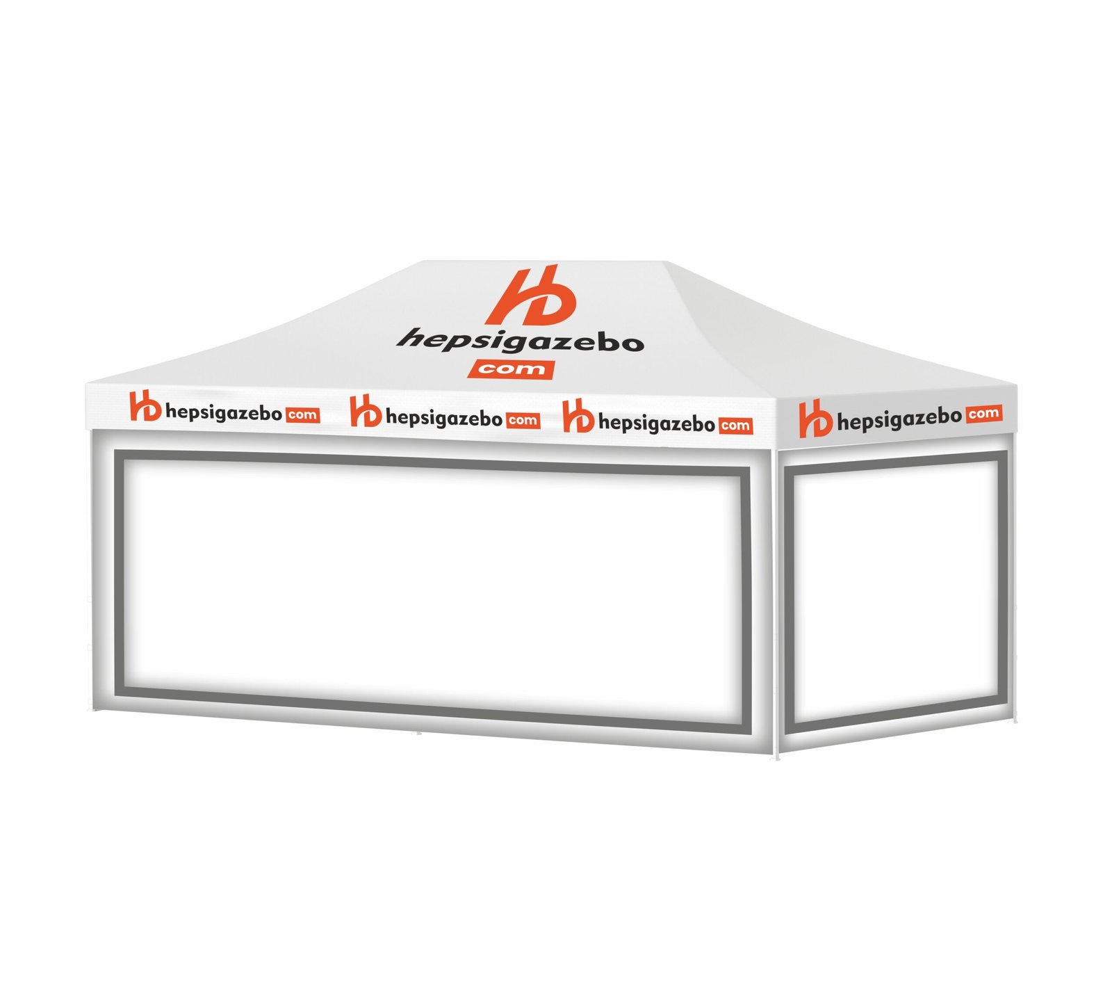 4×6 Baskılı Gazebo Tente (Baskılı Tavan+40’lık Çelik İskelet+2 Adet Şeffaf Duvar)
