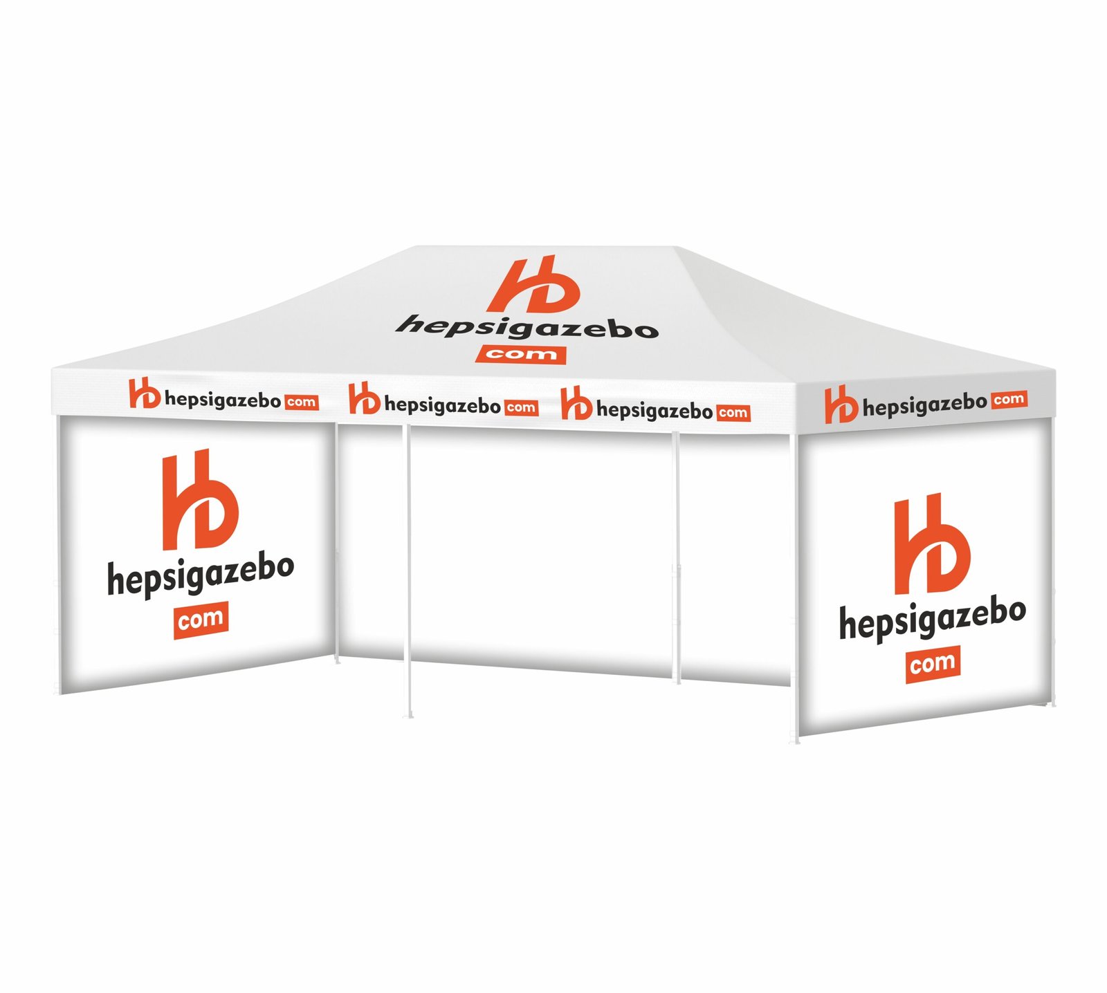 4×8 Baskılı Gazebo Tente (Baskılı Tavan+40’lık Çelik İskelet+2 Adet Baskılı Duvar+1 Adet Baskısız Duvar)