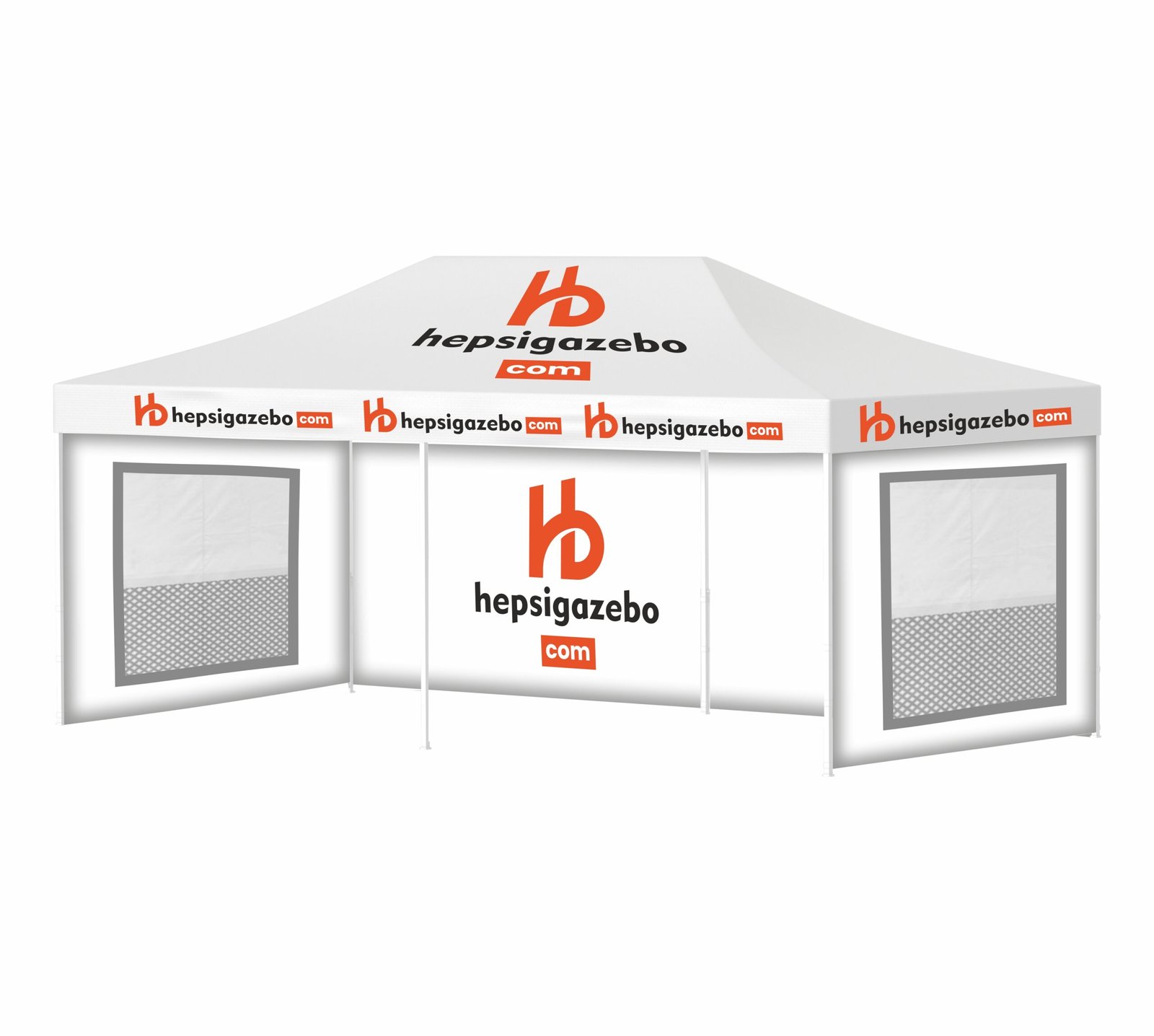 4×8 Baskılı Gazebo Tente (Baskılı Tavan+40’lık Çelik İskelet+2 Adet Sineklik+Şeffaf+Perdeli Pencereli Duvar+1 Adet Baskılı Duvar)