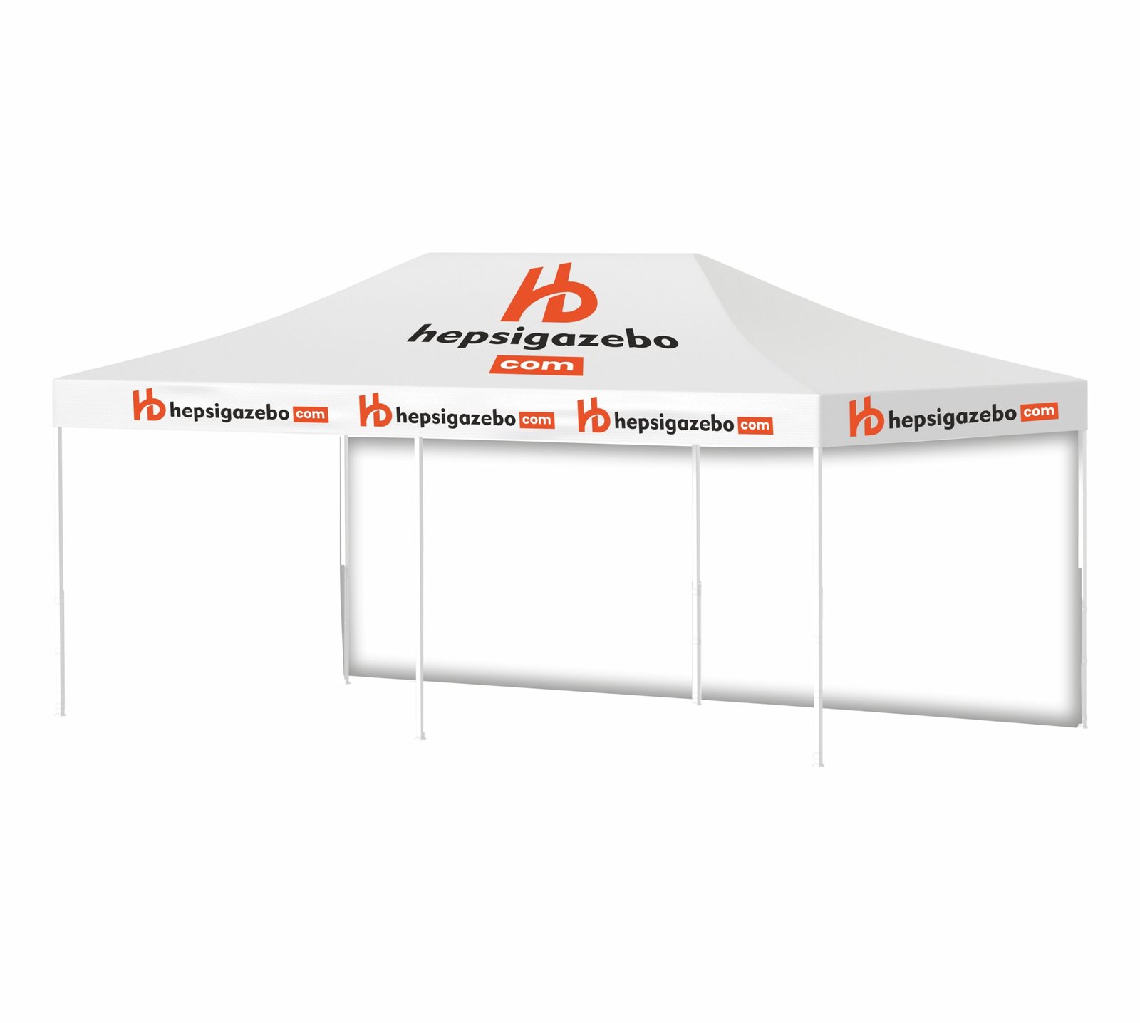 4×8 Baskılı Gazebo Tente (Baskılı Tavan+52’lik Alüminyum İskelet+1 Adet Baskısız Tam Duvar)