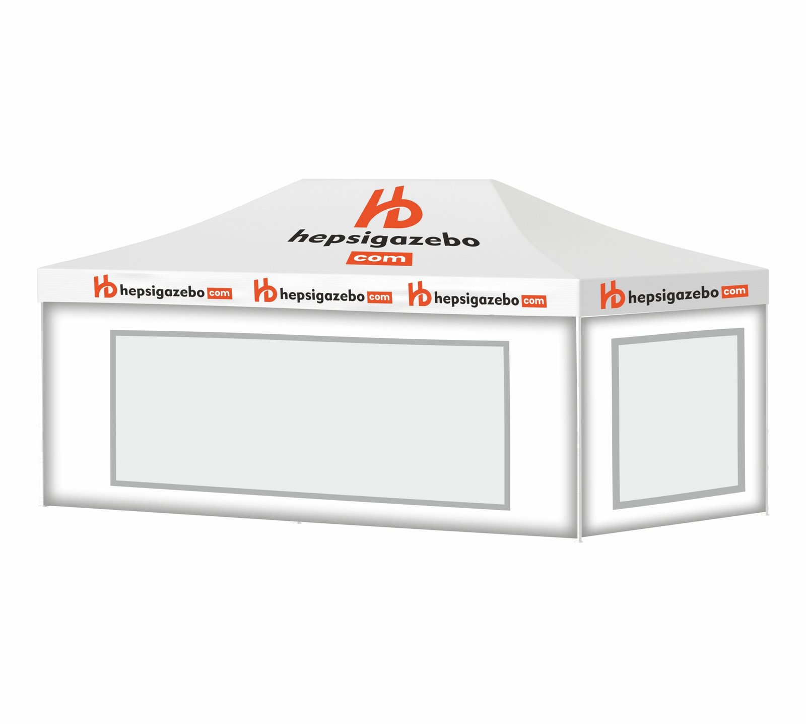 4×8 Baskılı Gazebo Tente (Baskılı Tavan+52’lik Alüminyum İskelet+2 Adet Şeffaf Duvar+2 Adet Baskısız Duvar)