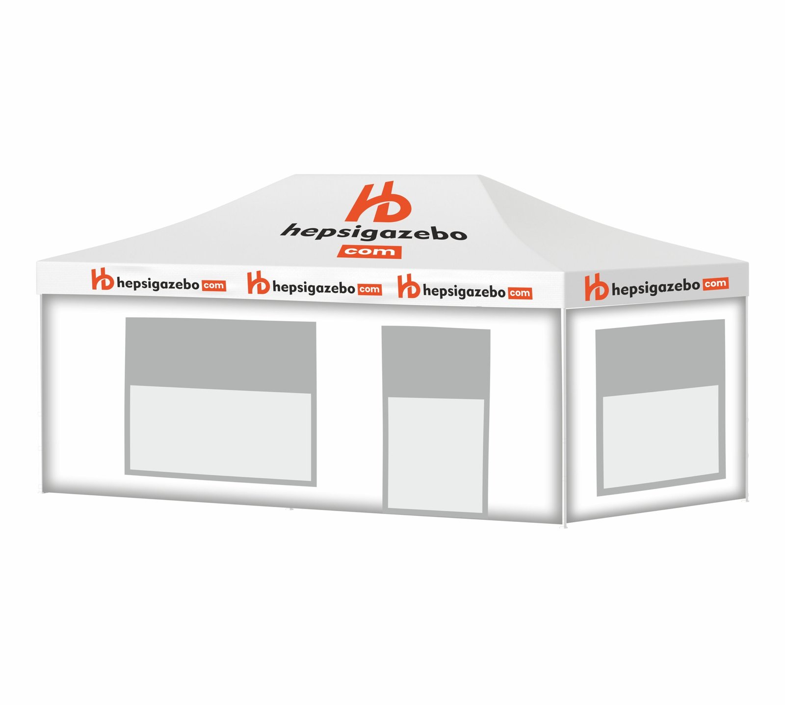 4×8 Baskılı Gazebo Tente (Baskılı Tavan+52’lik Alüminyum İskelet+2 Adet Şeffaf+Pencereli Duvar+1 Adet Tam Duvar+1 Adet Kapılı Pencereli Şeffaf+Pencereli Duvar)